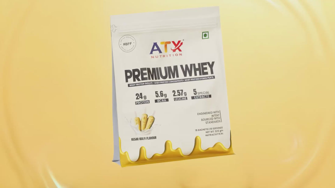 Shop NowATX Whey Kesar Kulfi | 525 GM | ISOLATE + CONCENTRATE + HYDROLYSATE | 15 SACHETS