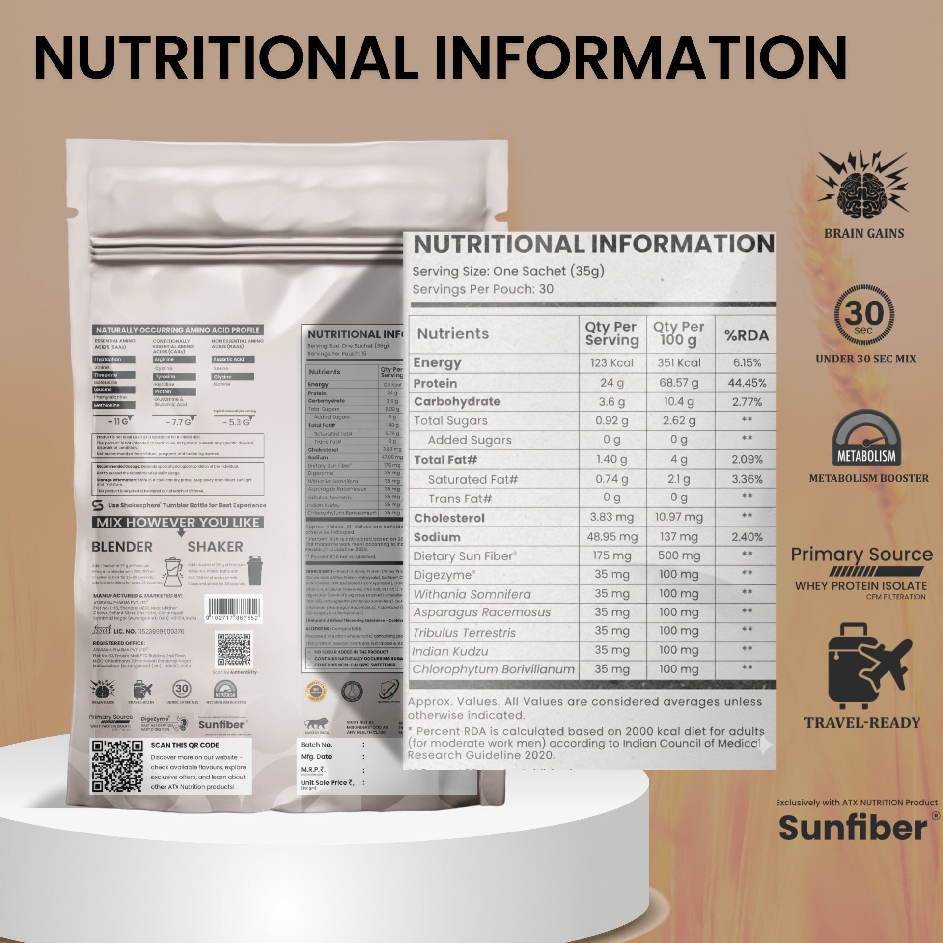 Inside every ATX Whey – Cookies & Cream sachet is a blend of premium Glanbia whey protein and carefully selected Ayurvedic extracts like Ashwagandha, Shatavari, Gokshura, Indian Kudzu, and Safed Musli. Together, they support strength, recovery, hormonal balance, and sustained energy—so you’re not just treating your taste buds, but also giving your body what it actually needs.