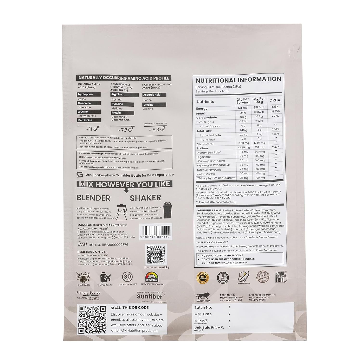 Inside every ATX Whey – Cookies & Cream sachet is a blend of premium Glanbia whey protein and carefully selected Ayurvedic extracts like Ashwagandha, Shatavari, Gokshura, Indian Kudzu, and Safed Musli. Together, they support strength, recovery, hormonal balance, and sustained energy—so you’re not just treating your taste buds, but also giving your body what it actually needs.