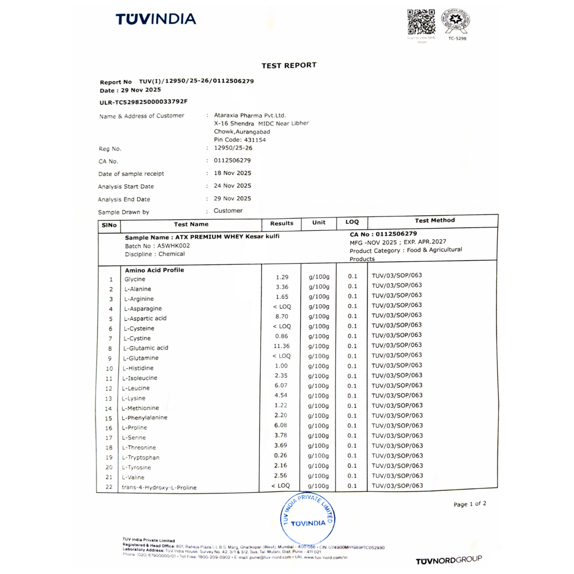 Each sachet of ATX Whey – Kesar Kulfi combines Glanbia’s high-quality whey protein with a functional blend of Ayurvedic ingredients like Ashwagandha, Shatavari, Gokshura, Indian Kudzu, and Safed Musli. These powerful extracts are known to support muscle recovery, strength, and vitality, making every serving more than just protein — it’s holistic nourishment designed to complement your fitness and lifestyle goals.