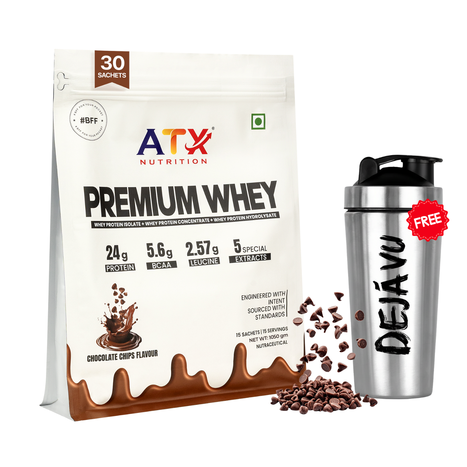 Each sachet of ATX Whey – Café Mocha is packed with high-quality Glanbia whey protein and a powerful blend of Ayurvedic extracts including Ashwagandha, Shatavari, Gokshura, Indian Kudzu, and Safed Musli. These ingredients are traditionally known to support energy, stamina, recovery, and overall wellness—giving your body more than just protein, and your mind more than just a caffeine kick.